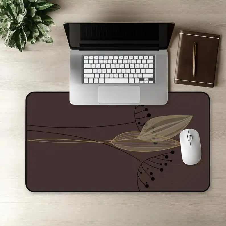 Brown Plant Pattern Table Mat,unique Mouse Pad, Rustic Style Desk Mat,deskmat Gift,natural and Simple Seed Head and Leaf Pattern
