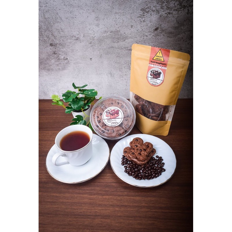 Brownies Crispy merupakan cemilan kue brownis yang kering dengan memiliki beberapa macam varian topping. Berat Bersih 125gr. Tetapi sistem yang kami gunakan PO. Kenapa PO? karna agar Brownies Crispy nya ini masih fresh from the oven. Brownies ini juga gak hanya di jadikan cemilan biasa loh, bisa juga di jadikan sereal, topping untuk ice cream, temen ngeteh atau apapun itu sesuai dengan selera.