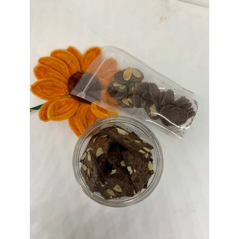 brownies crispy rasa almond dan keju adalah brownies panggang renyah dengan rasa coklat yang pas. ngemil manis yang enak dan dimakan kapan saja,dimana saja? brownchips 1 gigitan renyah kedalam dalam