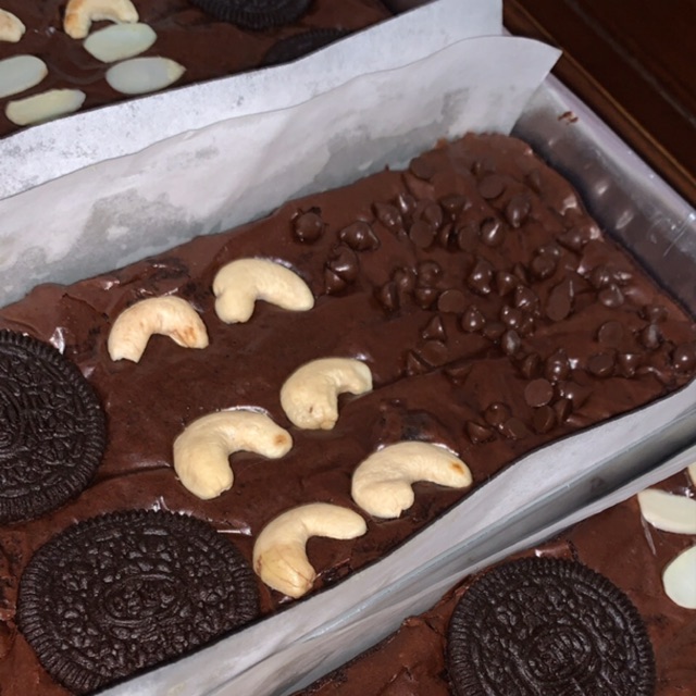 Brownies panggang yang nyoklat banget. Terbuat dari bahan2 premium dengan 3 topping