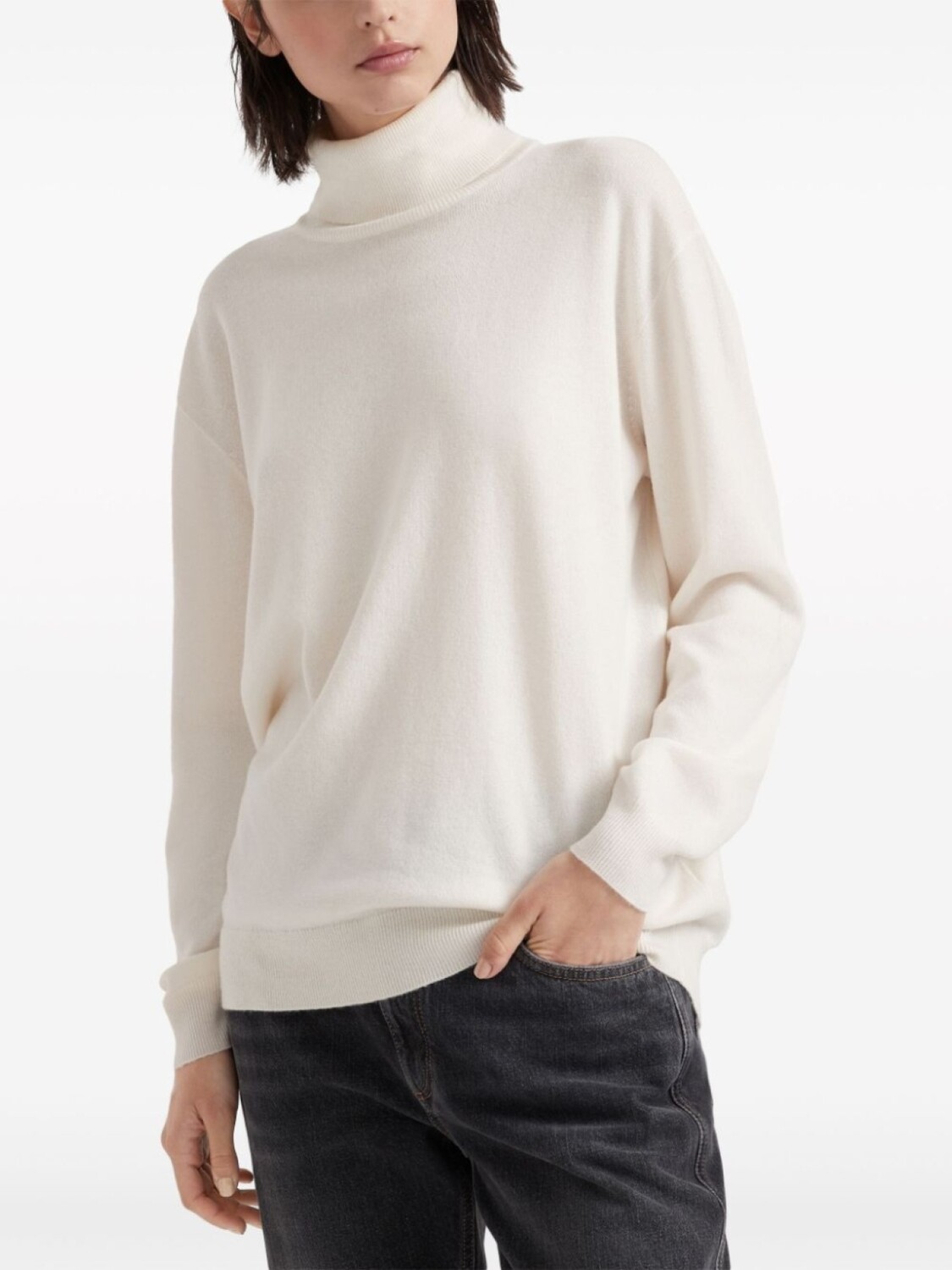 Brunello Cucinelli кашемировый джемпер с воротником-стойкой, белый