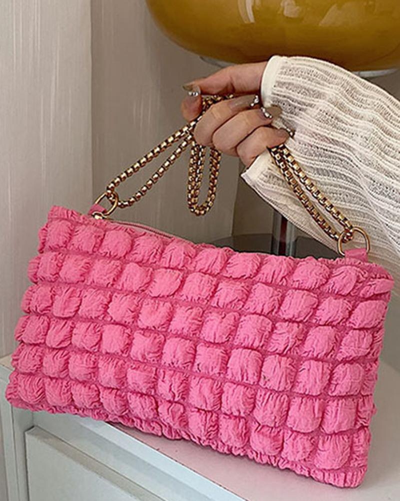 Bubble Textured Zipper Design Square Shoulder Bag, Pink