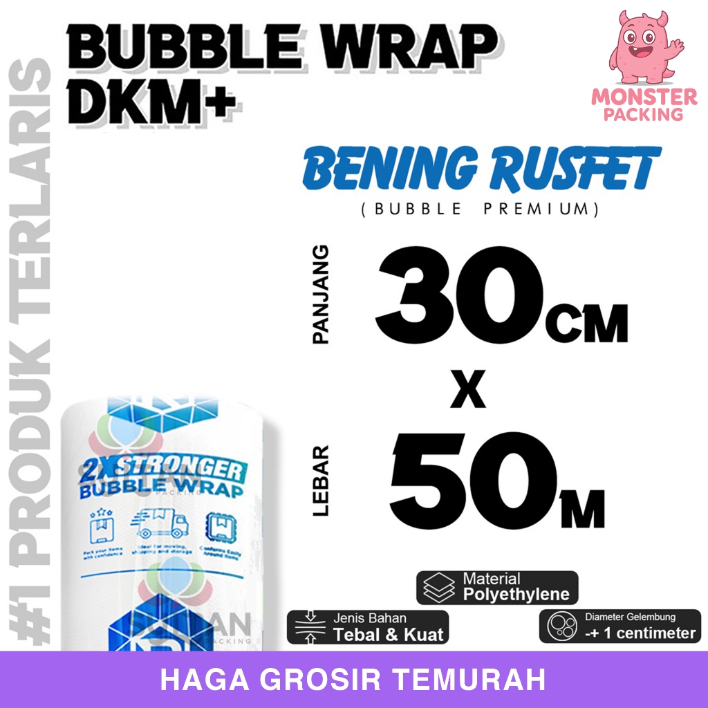 Bubble Wrap 30cm x 50meter RUSFET BENING Bubblewrap TERMURAH / ROLL