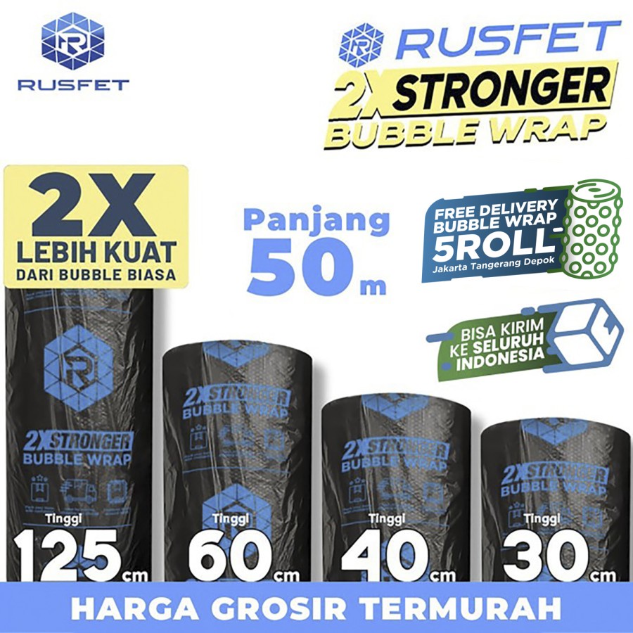 Bubble Wrap 50meter RUSFET HITAM DKM PLUS Bubblewrap TERMURAH / ROLL