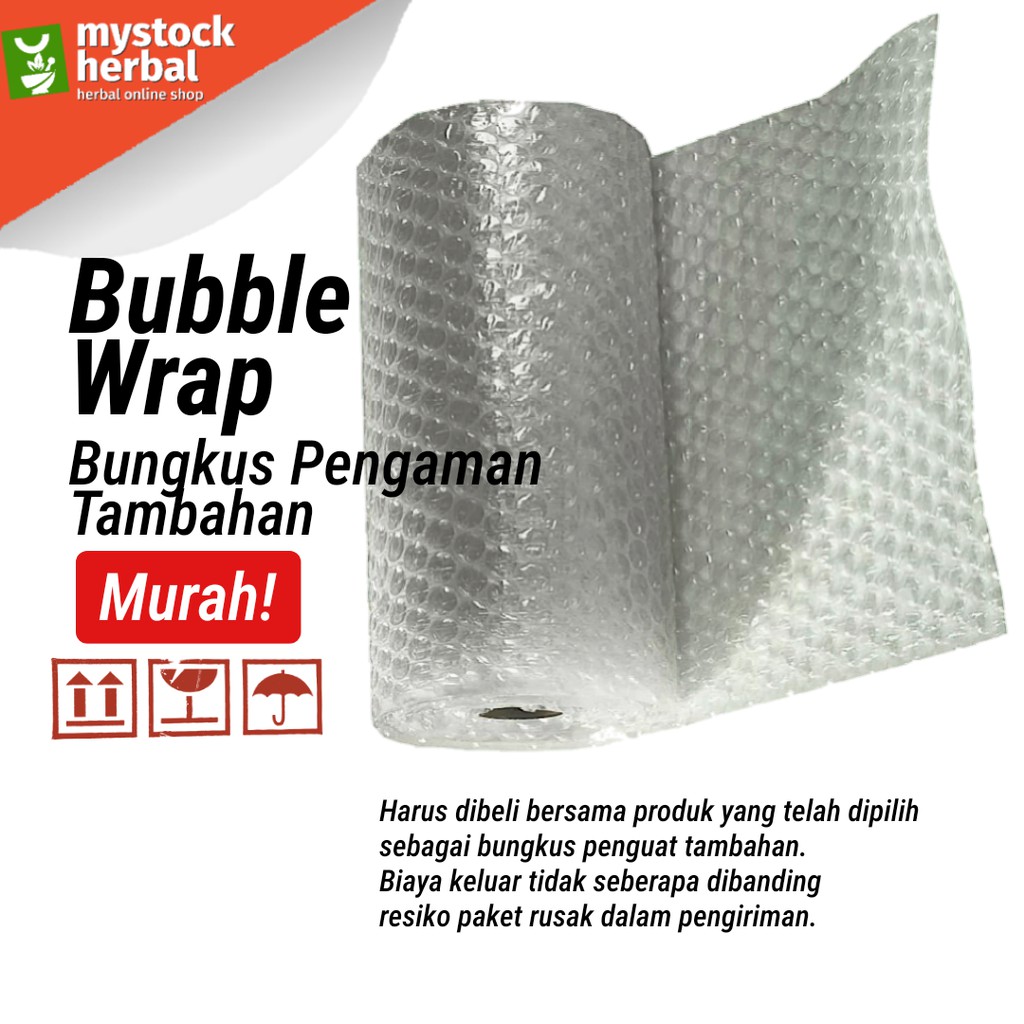 Kami menyediakan pembungkus tambahan sebagai pengaman produk yang anda beli, karena pembungkus standar kami sediakan hanya pembungkus plastik yang diperuntukkan untuk pembungkus dan mengantisipasi jika terkena air/cairan, maka untuk produk-produk yang rentan akan kerusakan seperti wadah/botol kaca rawan pecah, botol/wadah plastik rawan bocor, dsb. dan/atau pelanggan menginginkan extra pengaman maka dapat membeli/menambah bubble wrap.