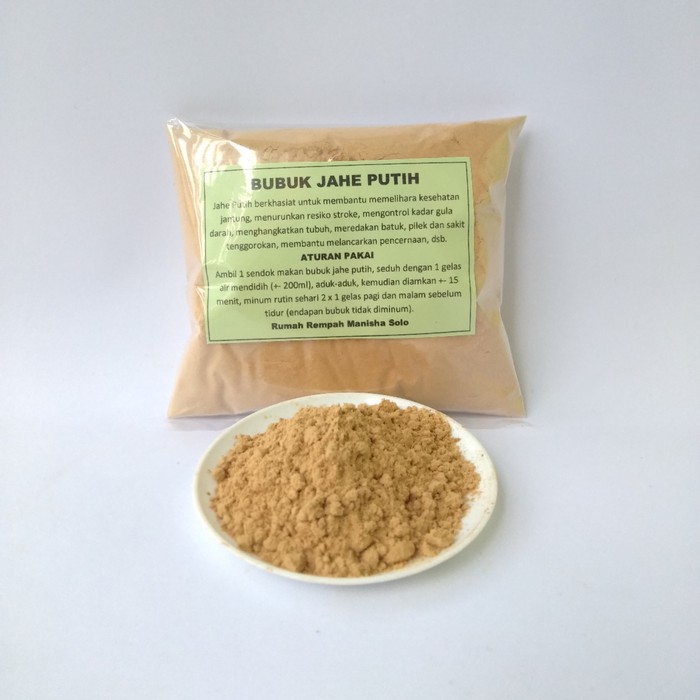 Ambil satu sendok teh penuh bubuk jahe putih, seduh dengan satu gelas air panas mendidih, aduk rata kemudian biarkan beberapa saat hingga bubuk mengendap. Minum secara teratur 2x satu gelas setiap hari