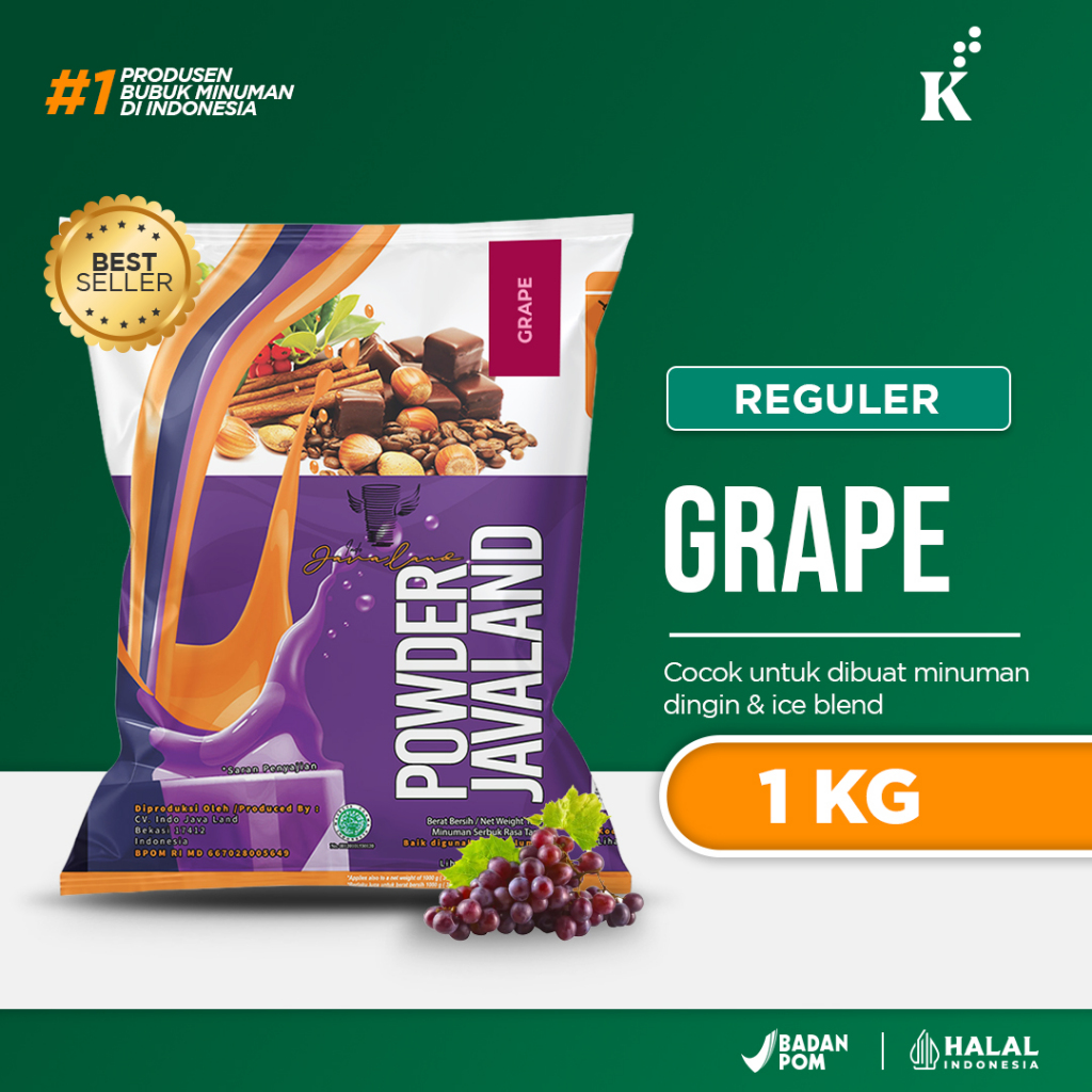 Jual bubuk minuman Grape dari JAVALAND termurah dan terbaik. Sudah dipercaya oleh lebih dari 400 mitra dari seluruh Indonesia seperti restoran, cafe, hotel, catering, kantin sekolah dan berbagai macam usaha kuliner lainnya.