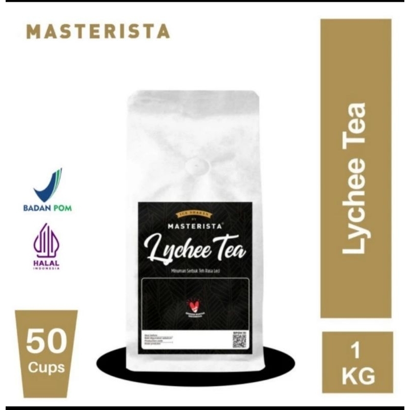 - Satu bungkus bubuk Ice Shaken Lychee Tea Masterista 1000 gram bisa untuk 40 gelas saji.