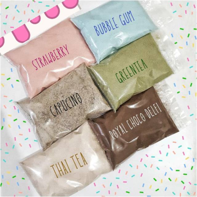 READY 11 RASA BUBUK MINUMAN ALA CAFE TERMURAH 3ribuan! insyallah halal dikonsumsi karena tdk mengandung bahan berbahaya rasa ? Boleh coba dulu aja minimal order 20pcs bebas pilih rasa dibawah ini