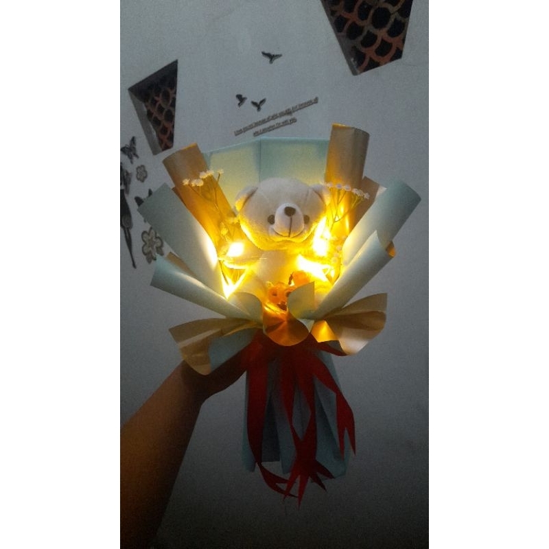 Buket dengan boneka wisuda ukuran medium