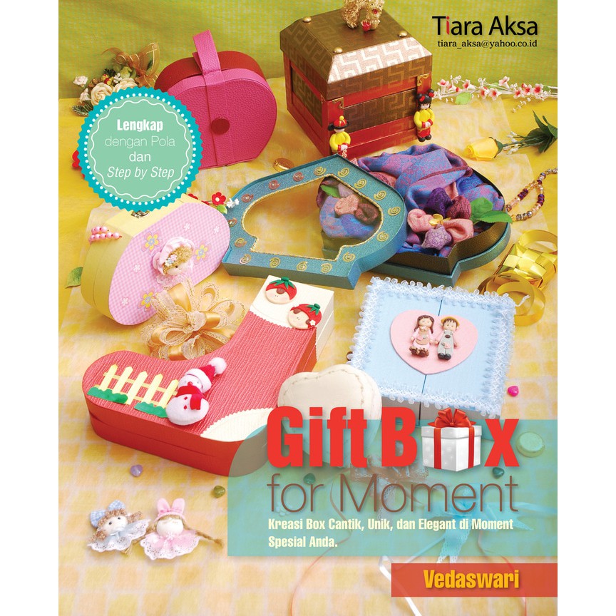 Box dan hadiah bagaikan sebuah pasangan, kalau hadiahnya sudah bagus tetapi box pembungkusnya biasa maka hadiah terasa kurang istimewa. Dalam buku Gift Box for ini Anda akan mendapatkan box yang indah dan sesuai keinginan, Anda tidak perlu merogoh uang untuk membelinya, dengan bahan-bahan yang ada di sekeliling rumah, Anda sudah bisa membuat box cantik, unik, dan cute dengan berpedoman pada buku ini.