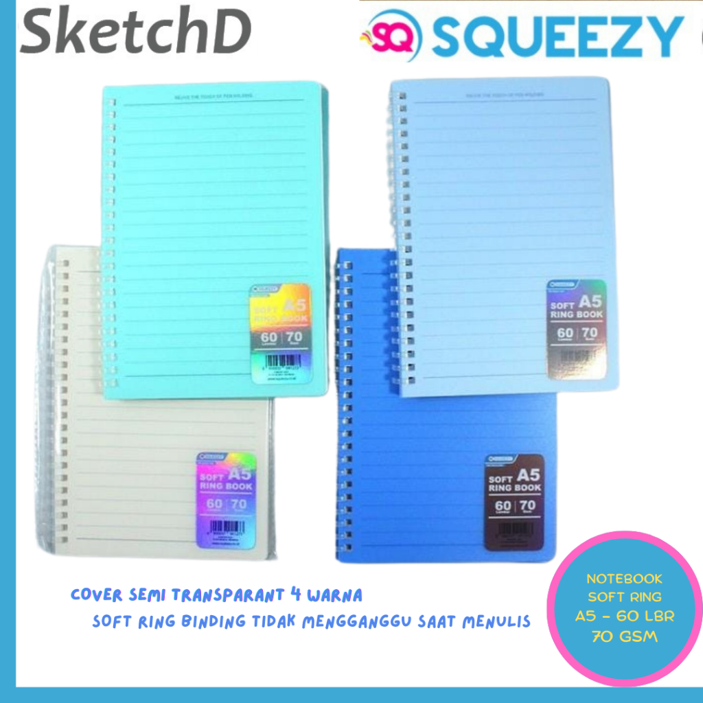 Buku Tulis Catatan Notes 3261 Squeezy Soft Ring NoteBook A5 60 lembar Note Book