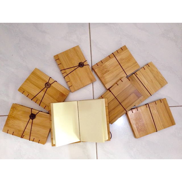 Buku catatan dengan cover terbuat dari bambu, yang di buat handmade. Ukuran A6