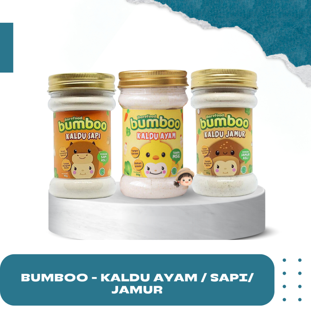 BUMBOO Kaldu Anak! Dibuat dari 100% ayam & jamur asli dengan bahan alami yang aman untuk dikonsumsi. Tidak ditambahkan gula dan garam seperti kaldu non-msg lainnya sehingga lebih baik untuk si kecil yang tidak boleh mengkonsumsi terlalu banyak garam.