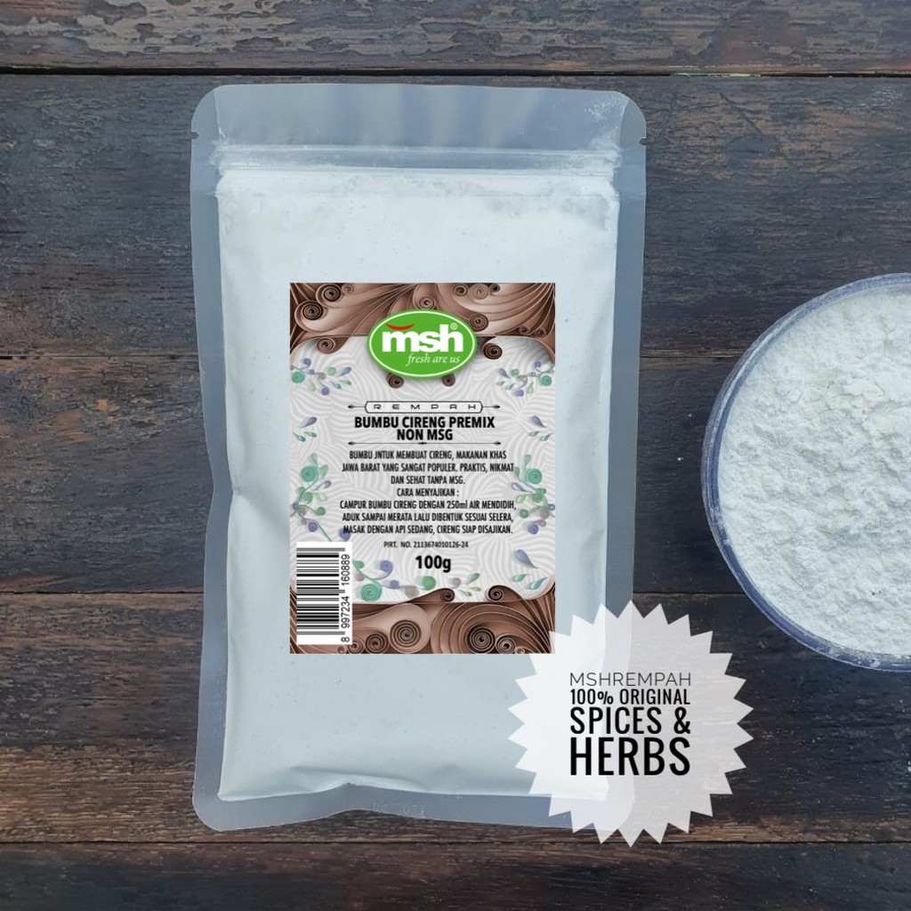 Bumbu Cireng Premix Non MSG merupakan bumbu untuk membuat cireng, makanan khas Jawa Barat yang sangat populer. Hadir dalam kemasan pouch dengan berat bersih 100 gram, praktis untuk disajikan, dan sehat tanpa MSG.
