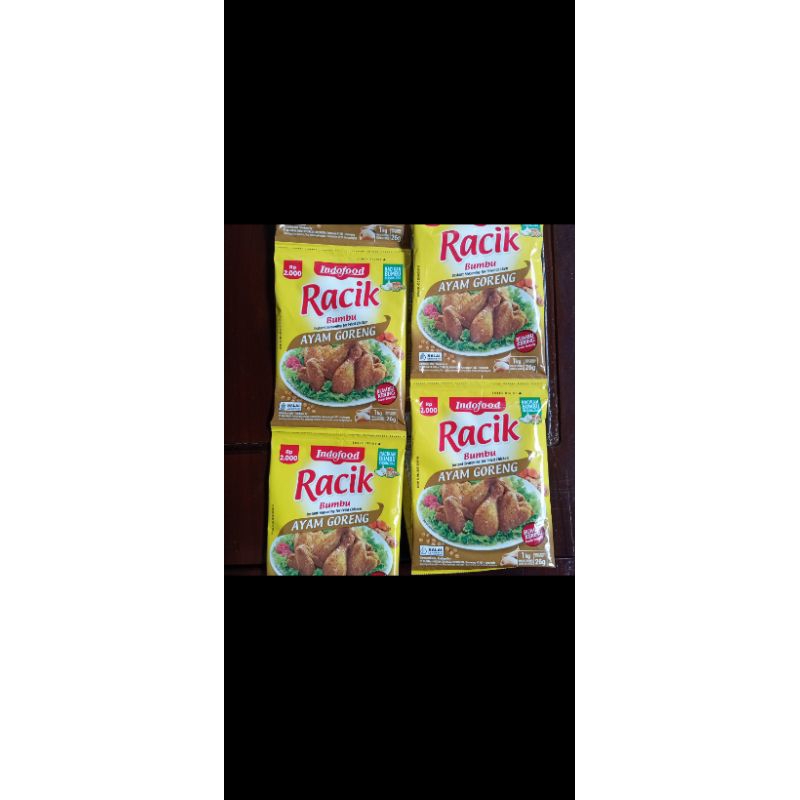 Bumbu dapur Racik dengan kualitas terbaik untuk memasak dan penambah cita rasa masakan. Varian bumbu untuk Ayam goreng. Harga yang tertera ada untuk pembelian per sachet. Expired aman.