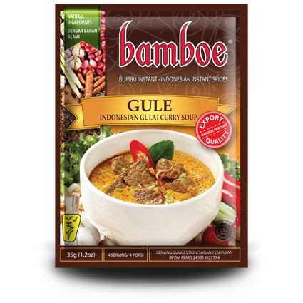Bumbu Instan Bamboe Gule 35 Gr Bumbu Instan Bamboe Gule, Tanpa Extract, Essence & Pewarna Buatan Bumbu instant yang telah dikenal sejak tahun 1968. Diproduksi menggunakan pilihan bahan-bahan natural yang fresh dan berkualitas, tanpa tambahan extract, essence, maupun pewarna buatan. Kini hadir dalam aneka citarasa khas Asia ke dapur Anda.