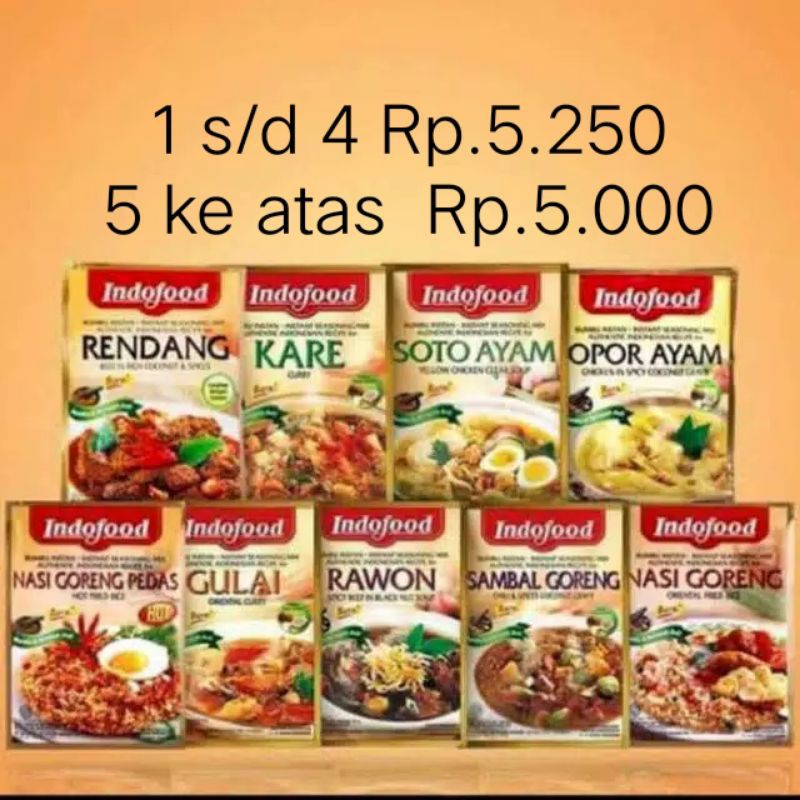 Bumbu Instan Indofood isi 45 gr , tersedia bermacam rasa antara lain :