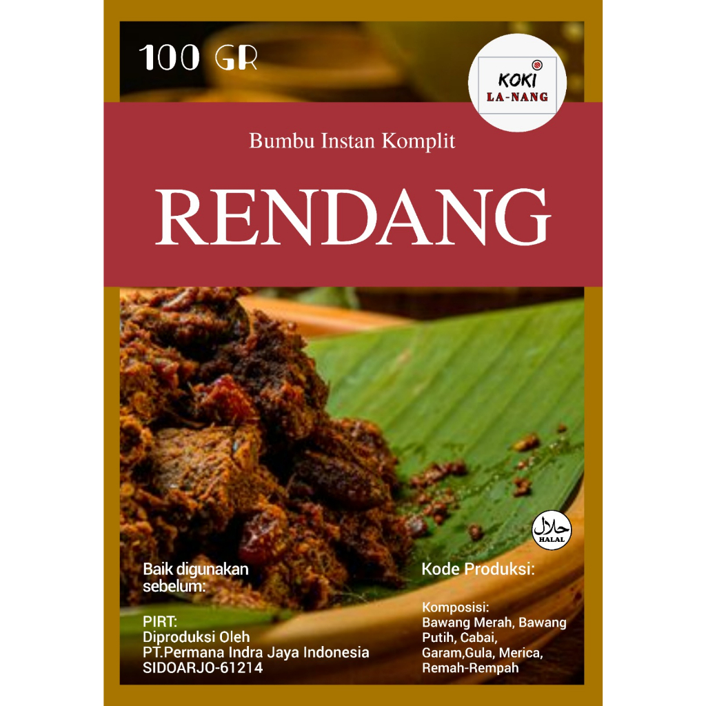 Bumbu instan rendang KOKI LA-NANG adalah campuran rempah-rempah yang terdiri dari bahan alami seperti cabe merah, cabe rawit, bawang merah, bawang putih, jahe, lengkuas, daun jeruk, dan berbagai rempah pilihan lainnya. Bumbu instan ini memberikan rasa lezat dan gurih pada daging rendang.