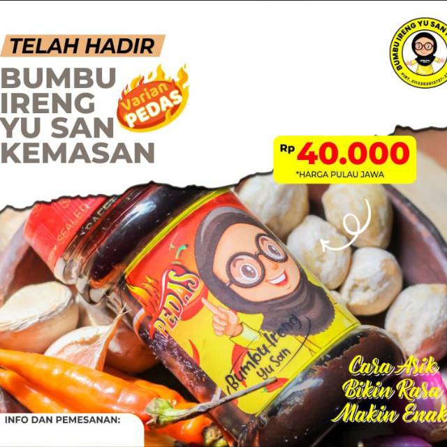 Campurkan 1 sendok (sesuai selera) bumbu ireng yu san pada menu makanan Anda.
