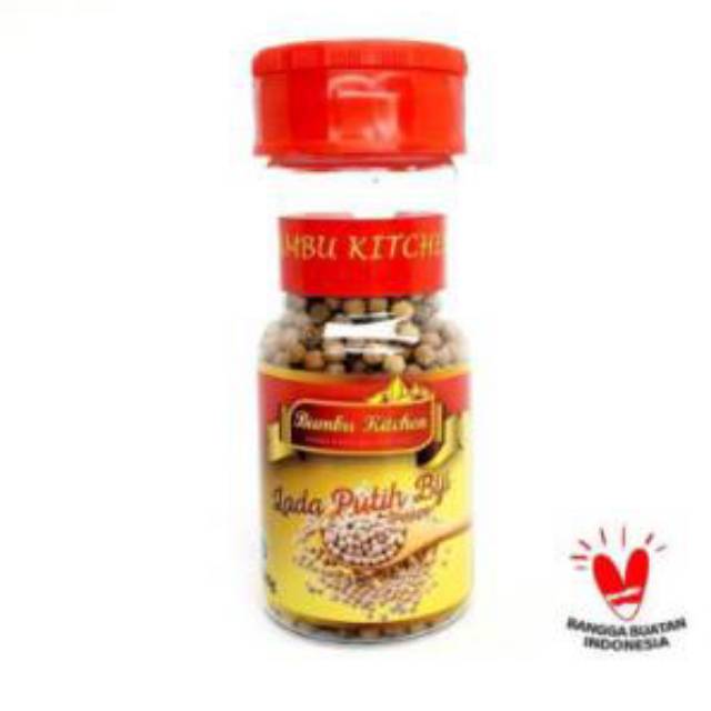 Bumbu Kitchen lada putih biji dengan kualitas terbaik dikemasi dengan standarisasi yang tinggi untuk mempertahankan kesegaran rasa asli lada putih .