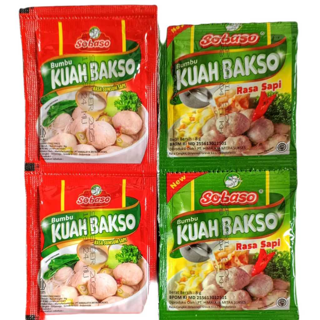 Bumbu kuah bakso rasa sapi & sumsum sapi Sobaso adalah solusi praktis untuk membuat kuah bakso yang kental dan beraroma khas daging sapi. Dengan membeli minimal 1 pack (120 pcs), Anda dapat menikmati keuntungan dari pembelian dalam jumlah banyak dengan harga yang lebih terjangkau. Setiap bungkus bumbu kuah bakso rasa sapi memiliki berat bersih 8 gr, sehingga cukup untuk membuat kuah bakso yang lezat.