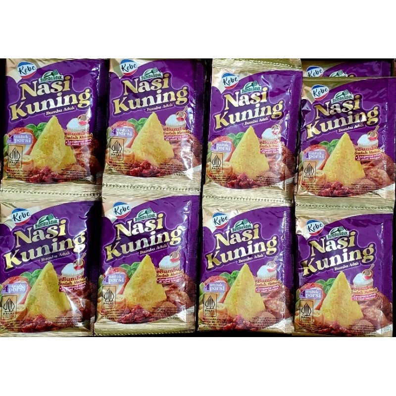 Kobe bumbu nasi kuning praktis cukup di aduk tidak perlu di masak, siapkan 4 porsi nasi hangat dan campurkan 1pcs bumbu nasi kuning. nasi kuning siap di sajikan. Nggak perlu repot