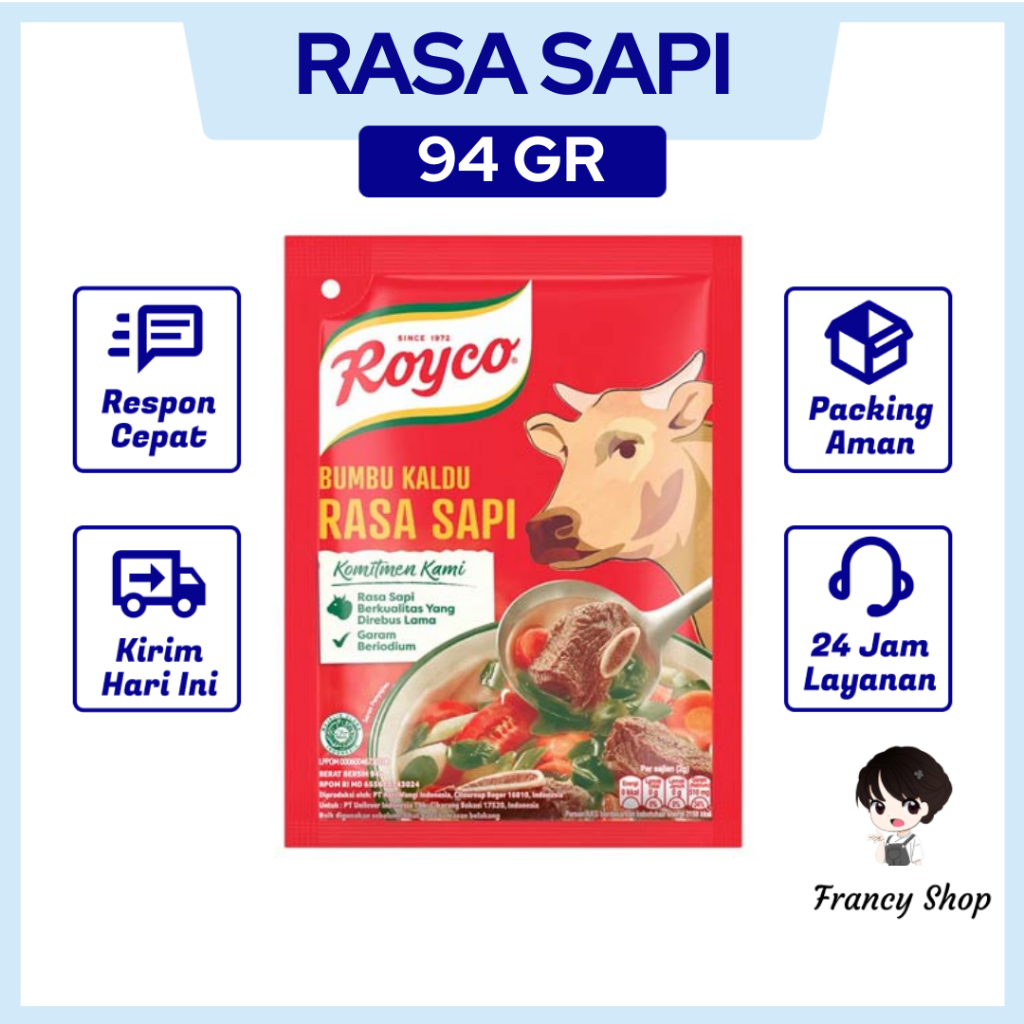 Royco Bumbu Pelezat Rasa Sapi Pouch adalah salah satu inovasi bumbu masakan Indonesia yang dipersembahkan oleh Royco. Hadir dalam kemasan pouch dengan berat bersih 94gr. Bumbu pelezat ini dihasilkan dari bahan dan rempah pilihan, seperti sumsum tulang yang gurih dan daging sapi yang berkualitas. Setiap pouch bumbu masakan Indonesia ini akan menghasilkan masakan dengan rasa ayam yang istimewa dan disukai oleh setiap anggota keluarga. Hadirkan berbagai masakan Indonesia dengan rasa ayam yang lezat setiap hari di rumah Anda dengan Royco Bumbu Pelezat Rasa Sapi