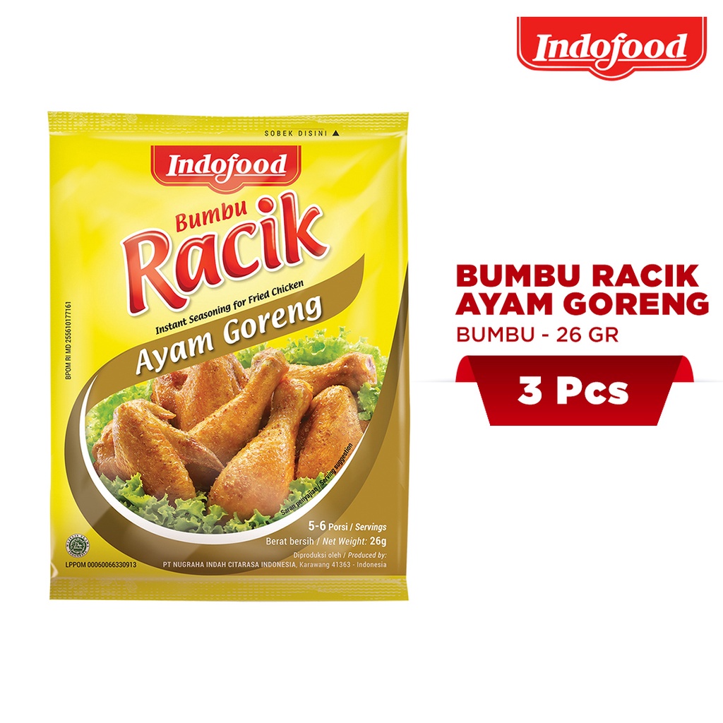 Bumbu Racik Indofood Ayam Goreng - 3pcs merupakan bumbu racik instan yang membuat ayam goreng Anda tambah nikmat. Keunggulan :