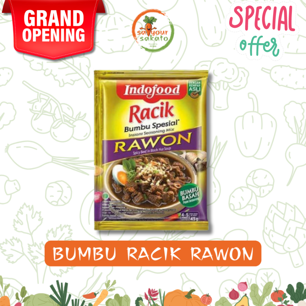Rawon merupakan salah satu jenis masakan yang mempunyai rasa gurih nan lezat. Rawon lazimnya berisikan daging sapi yang dicampur dengan kuah sup berwarna hitam. Apabila Anda senang masak dan juga suka dengan Rawon, Indofood Bumbu Rawon cocok sebagai bumbu masakan Anda. Bumbu Dapur ini adalah salah satu bumbu dapur yang terbuat dari rempah-rempah asli dan alami. Dipadukan dengan sangat teliti sehingga menghasilkan rasa masakan Rawon yang lezat Khas Indonesia yang otentik. Dengan bumbu dapur ini, Anda bisa membuat Rawon lezat untuk disantap bersama teman maupun keluarga. Oleh karena itu, untuk Anda yang senang dengan Rawon, jangan lupa selalu sediakan Indofood Bumbu Rawon.
