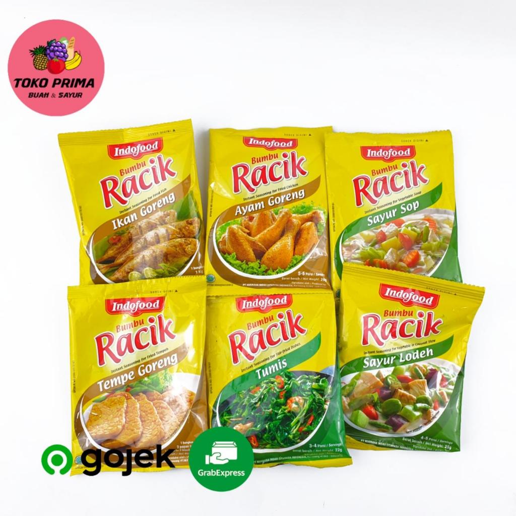 Description Produk: INDOFOOD BUMBU RACIK INSTANT Berat : 18-24 Gram Exp: masih panjang Produk selalu ready stock, tunggu apa lagi langsung saja di order…++++++++++++++++++++++++++++++++TOKO PRIMA BUAH&SAYUR menjual berbagai Buah-buahan dari yang Lokal hingga Import, Kami selalu menjaga kesegaran buah yang kami kirim. TOKO PRIMA BUAH&SAYUR Juga menjual berbagai macam sayur-sayuran serta Sembako yang pastinya harga bersahabat dan banyak variannya.Selamat Berbelanja...>> Pengiriman >> Note