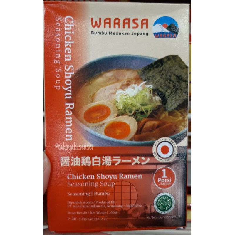 Bumbu kuah ramen (mie ala Jepang) HALAL, rasa original (shoyu/asin gurih) merek Warasa. Ukuran 60 gram, isi 1 sachet untuk 1 porsi