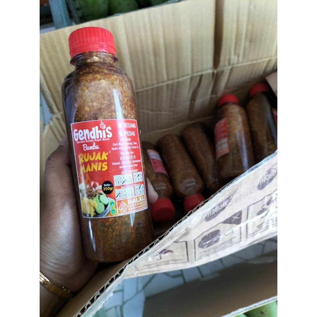 Bumbu rujak ini terbuat dari perpaduan gula merah, kacang dan cabe, tersedia ada 2 rasa, yaitu Sedang dan Pedas, silahkan diorder kak...