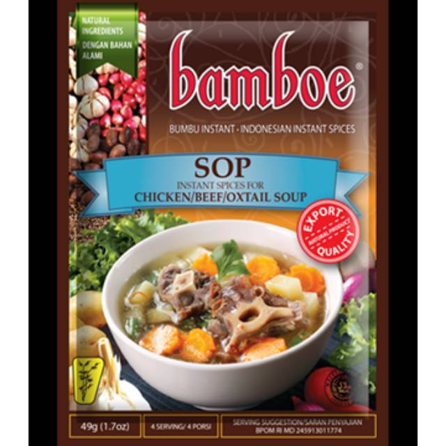 Bumbu dapur BAMBOE yang sudah terkenal sejak tahun 1968.. Tidak perlu diragukan lagi kelezatan nya karena memakai rempah asli sehingga masakan terasa lebih nikmat.. telah menjadi partner supplier bumbu restoran dan hotel..
