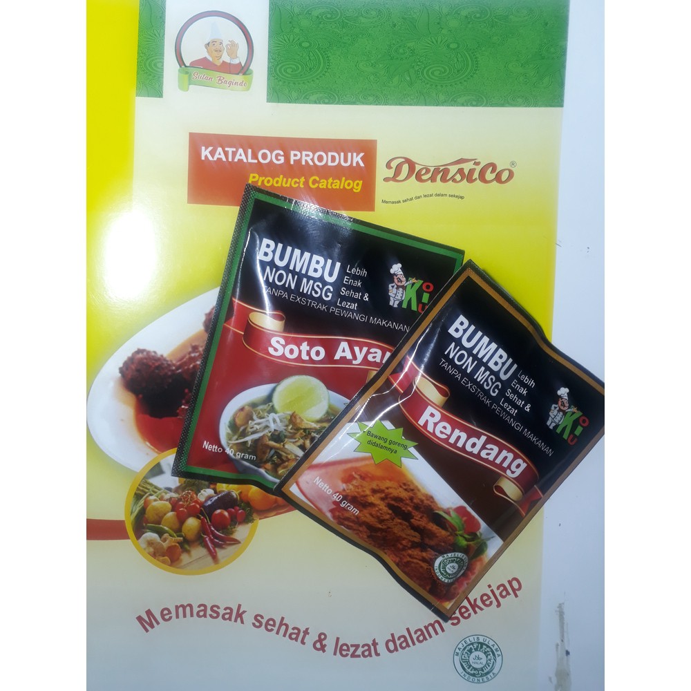 Bumbu Instan produk terbaru dari Densico Bumbu instan NON MSG terbuat dari bahan bahan pilihan tanpa campuran non rempah rempah dan tidak menggunakan exstrak pewangi makanan sehingga bumbu ini sehat dan aman utk di konsumsi. legalitas produk ini terjamin PIRT, BPOM MUI, LPPOM izin edar