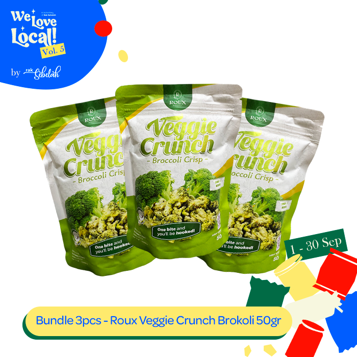 Bundle 3pcs Roux Veggie Broccoli Crunch 50g - Keripik Sayur Brokoli Kering Healthy Snack | Less Oil | Rak Sebelah