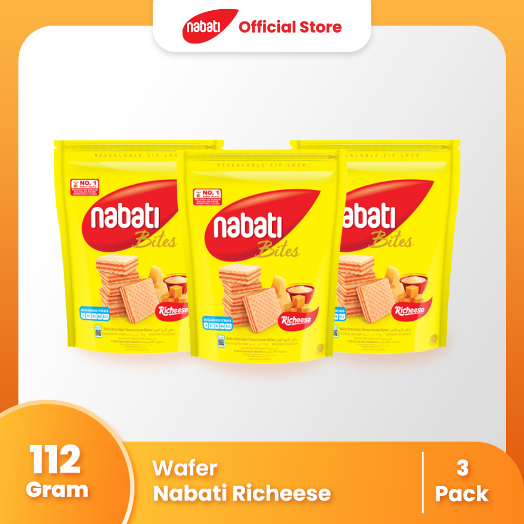 Kombinasi sempurna antara renyahnya wafer dan krim keju Richeese signature flavor Nabati yang berlimpah. Dibuat dengan bahan-bahan berkualitas tinggi, Nabati Richeese Wafer diperkaya dengan vitamin A, B1, B2, B6, dan B12. Setiap gigitan membuat kamu lebih bersemangat!