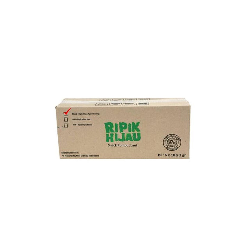 Ripik Hijau adalah makanan ringan rumput laut korea yang digoreng dengan temperatur yang tepat sehingga menghasilkan tingkat kerenyahan yang pas. Paduan bumbu racikan khusus dan rumput laut pilihannya menjadikan Ripik HIjau selezat lauk.