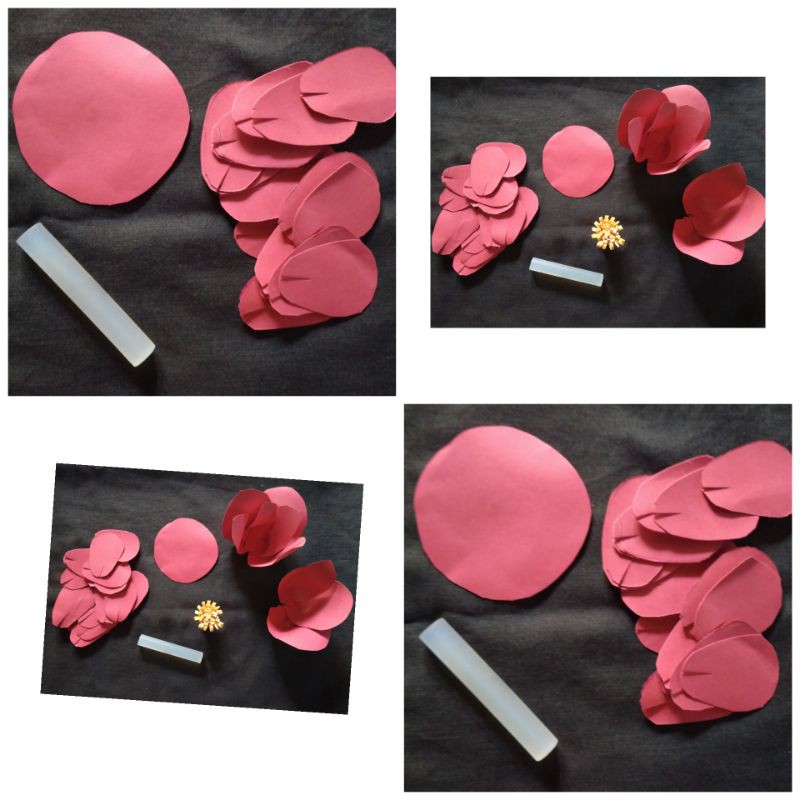 Paket bunga kertas rakit. bisa rangkai dirumah dimana pun dan kapan pun. 1 paket berisi potongan pola bunga, 1 kertas putik, dan 1 lem lilin.