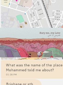 Bury me, my Love is a Text Messaging Adventure game about Nour, a Syrian migrant trying to find her way to Europe. Her husband Majd, who remains behind in Syria, communicates with Nour through a messaging app, advising her as best he can so that she reaches her destination safely.“Bury me, my love” is a Syrian goodbye phrase that roughly means, “Take care, don’t even think about dying before I do.” This phrase takes on a deeper meaning as Majd says it to his wife, Nour, as she undertakes her perilous journey to reach Europe.A co-production from ARTE, the European cultural network, with The Pixel Hunt and Figs.A game in an instant messaging appAs Majd, you can communicate with Nour and follow her journey, just as if you were chatting with her via WhatsApp. You will text each other and exchange emojis, pics and selfies, relevant links…Multiple narrative routes to discoverBy reading instant messages and choosing response options, players help Nour overcome the hardships she will encounter.Your choices in Bury me, my Love truly impact on the story, with Nour able to visit 50 different locations and reach 19 potential different endings with widely divergent outcomes.Based on real-life eventsBury me, my Love is a “reality-inspired game”, a documented fiction that draws inspiration directly from real-world events. The original idea stems from an article written by Le Monde journalist, Lucie Soullier, telling the story of Dana, a young Syrian woman who fled her country and is now living in Germany.This experience may affect the sensitivity of younger people.