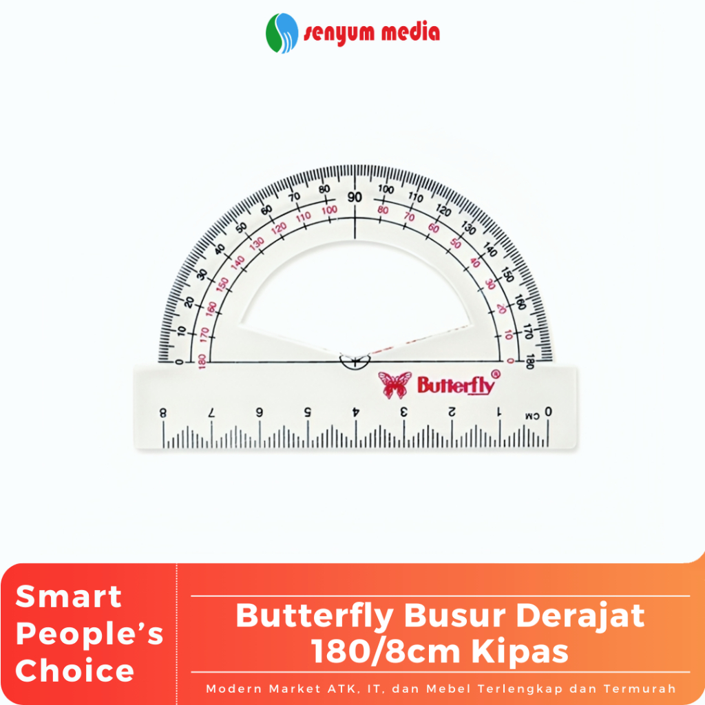 Busur butterfly ini adalah alat yang tepat untuk pengukuran derajat. Dengan bahan plastik yang kuat, busur ini dapat digunakan dalam jangka waktu lama tanpa khawatir akan rusak. Struktur padanya juga membuatnya lebih kuat dalam menangani tugas berulang kali. Tak hanya itu, busur ini juga memiliki kemampuan unggulan dalam hal akurasinya. Dengan kemampuan mengukur hingga 180 derajat, sobat dapat mengandalkan busur ini tanpa perlu khawatir akan kesalahan pengukuran