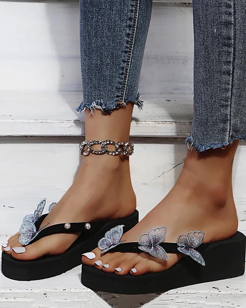 Butterfly Embroidery Toe Post Flip Flops, Green