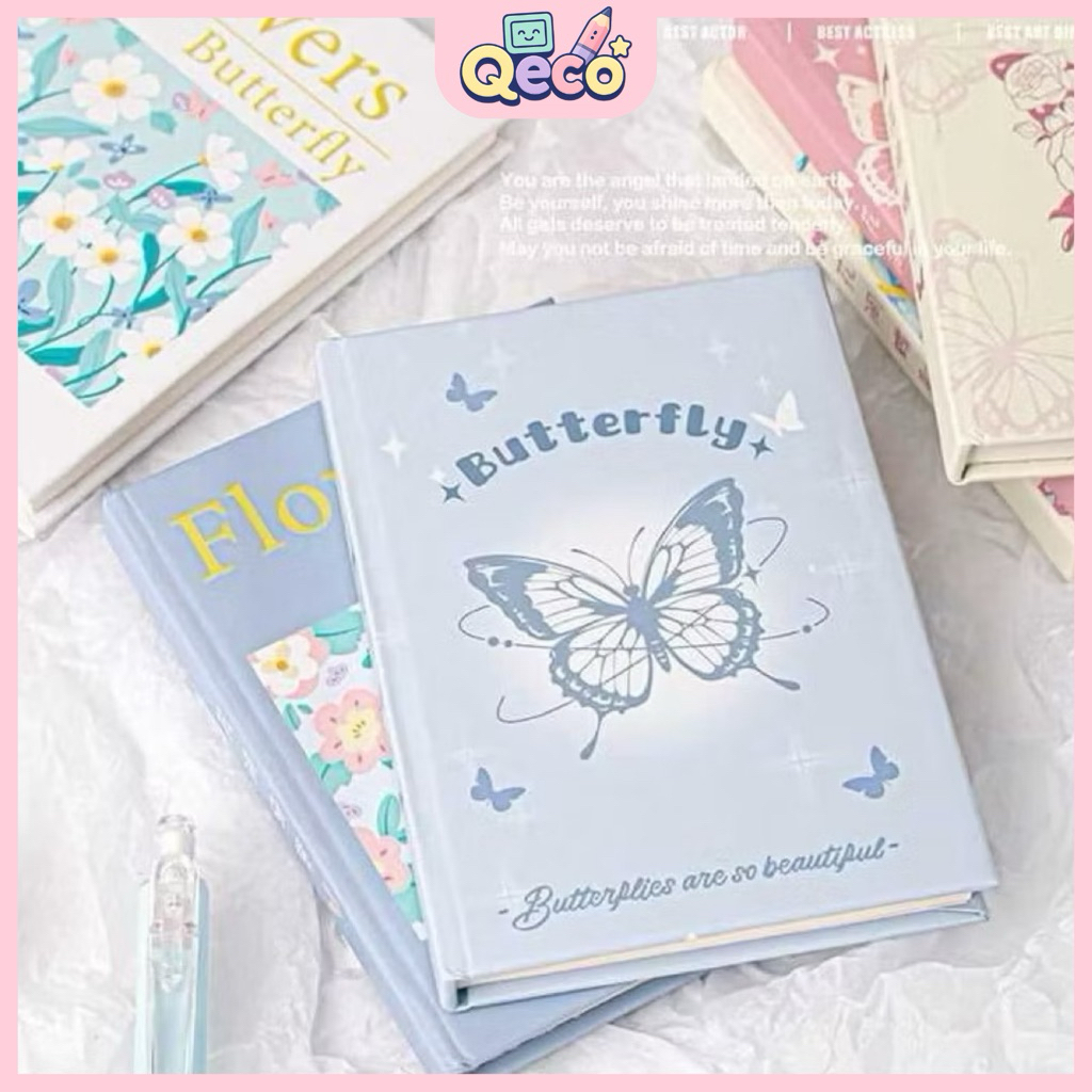 Notebook A7 dengan hardcover motif kupu-kupu yang cantik dan elegan. Berisi 80 lembar kertas polos tanpa garis, cocok untuk sketsa, doodle, catatan bebas, atau journaling kreatif.