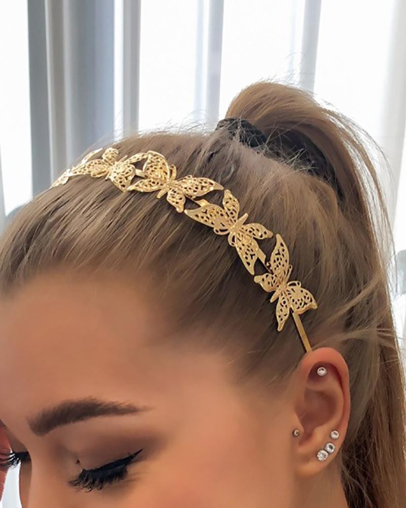 Butterfly Pattern Metal Headband Thin Hair Hoop Accessory, Gold