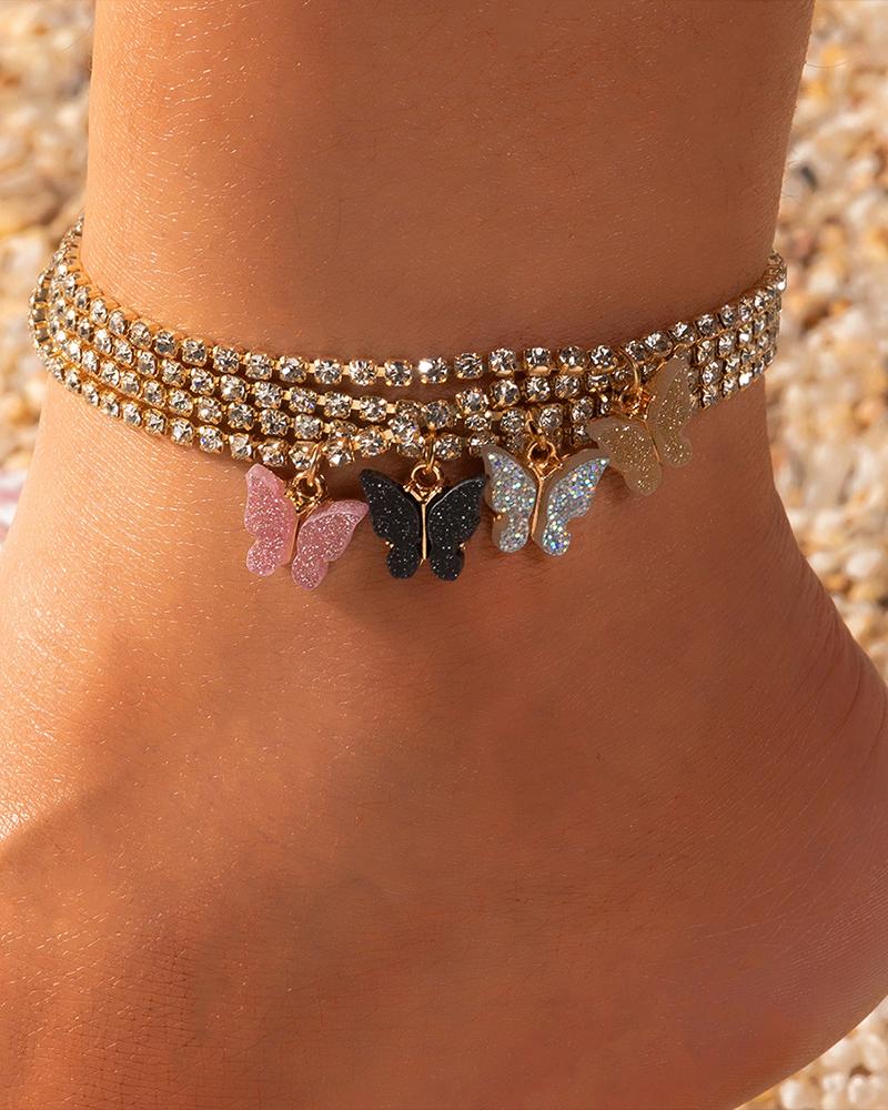 Butterfly Pattern Rhinestone Anklet, Black