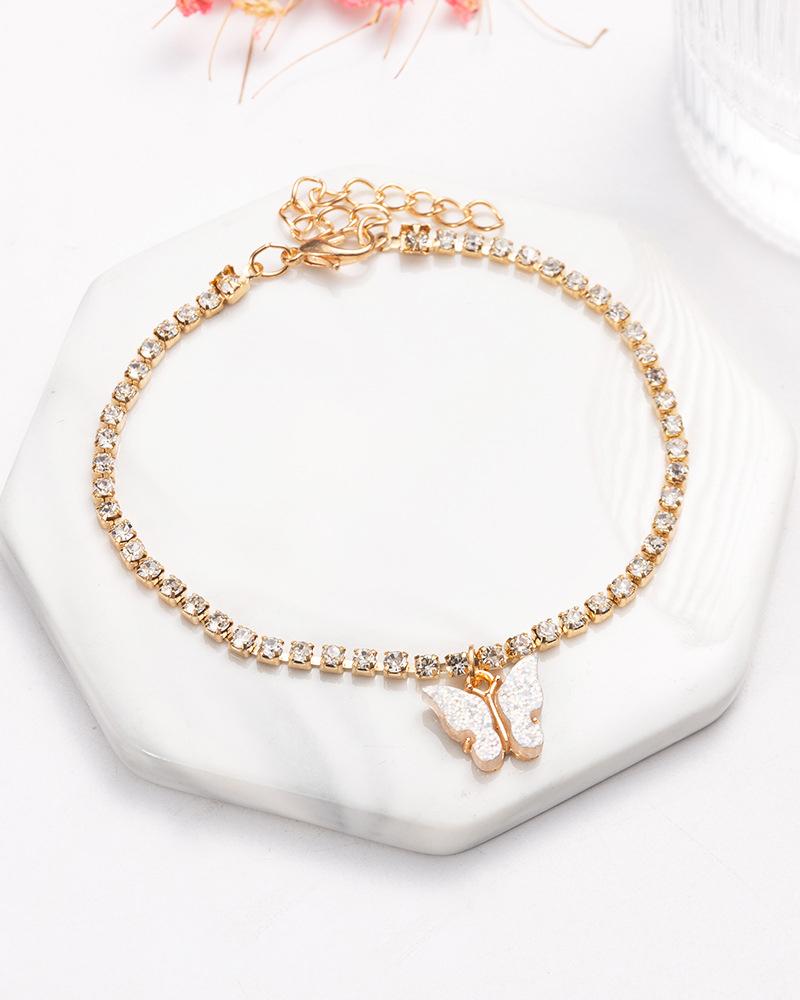 Butterfly Pattern Rhinestone Anklet, White