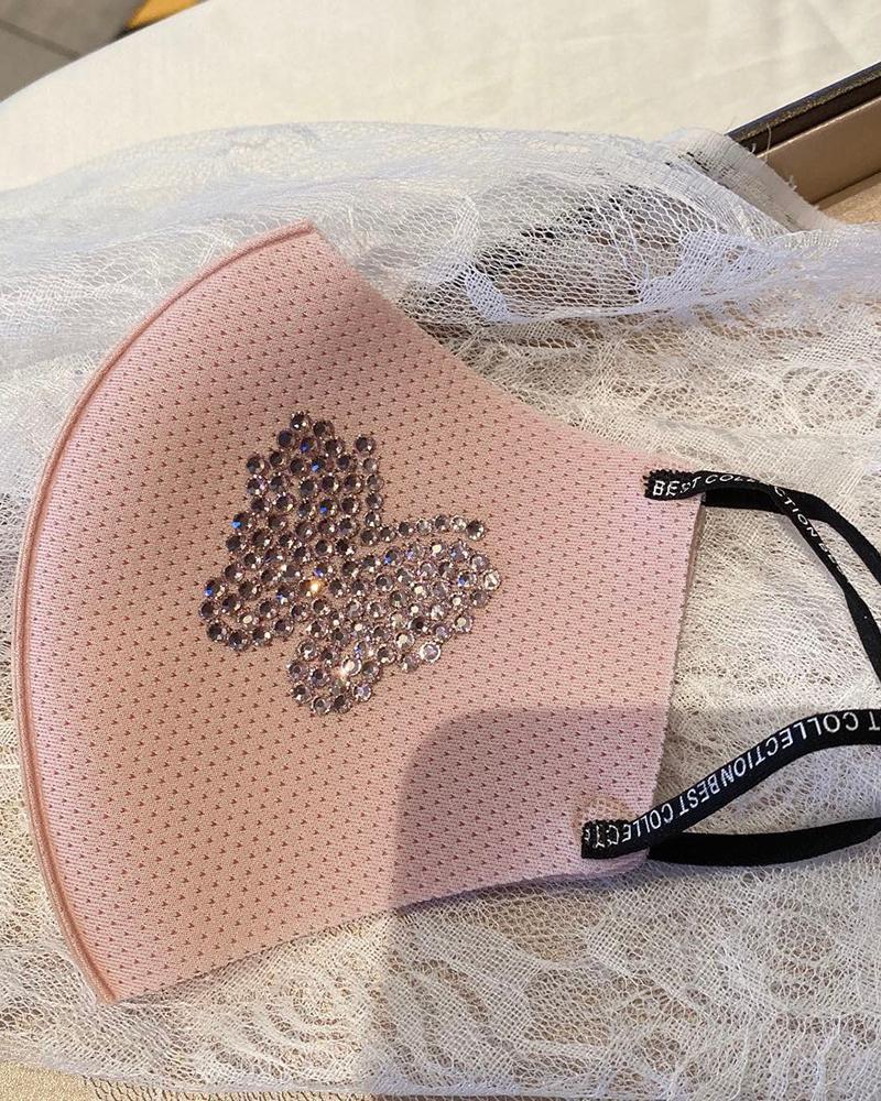 Butterfly Pattern Rhinestone Breathable Mouth Mask, Pink