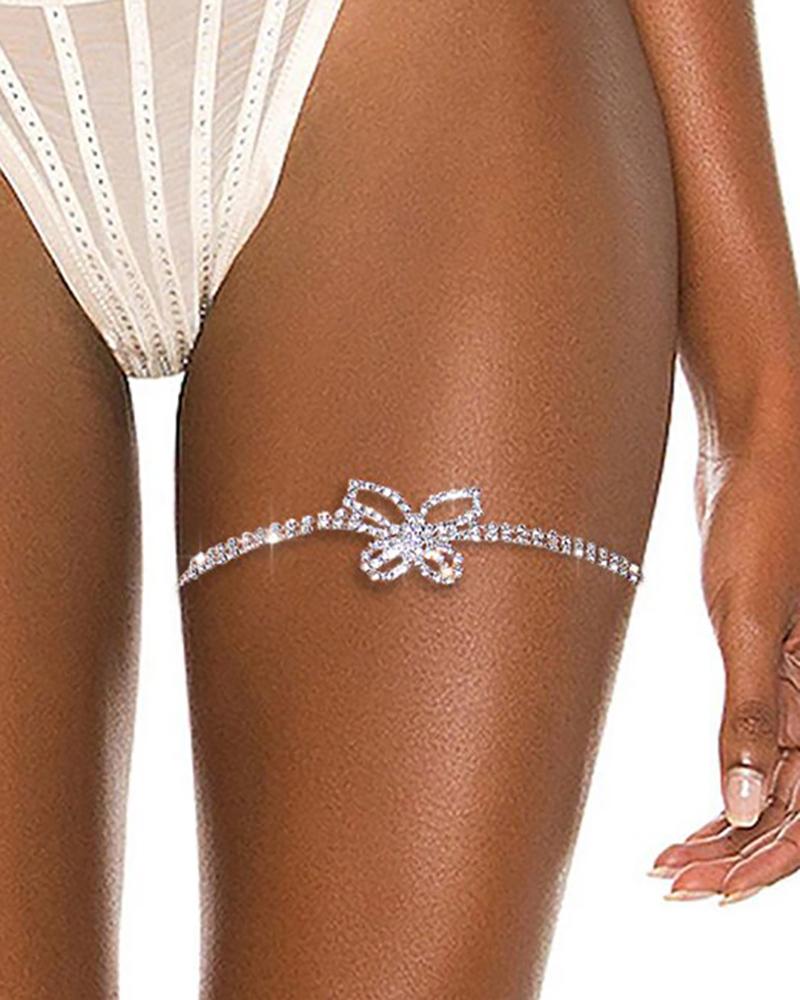 Butterfly Pattern Rhinestone Leg Ring, Silver