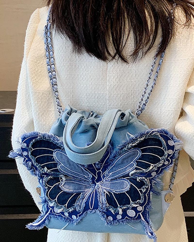 Butterfly Pattern Storage Backpack Fashionable Shoulder Bag, Blue