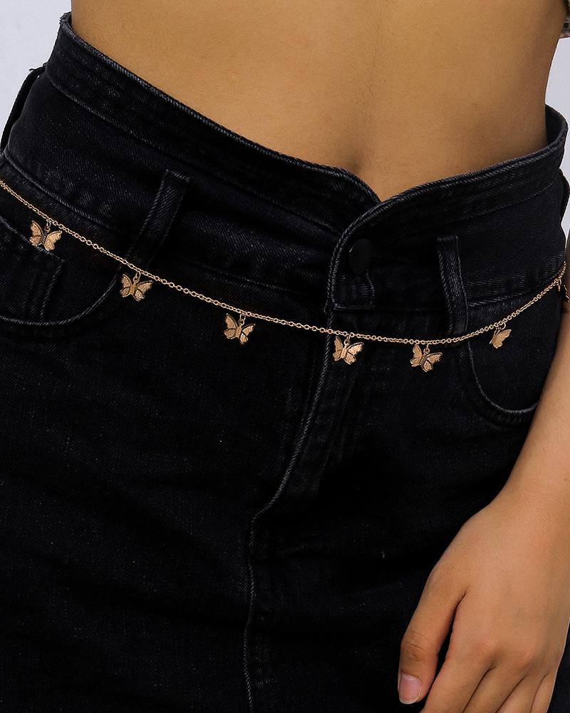 Butterfly Pattern Waist Chain, Gold